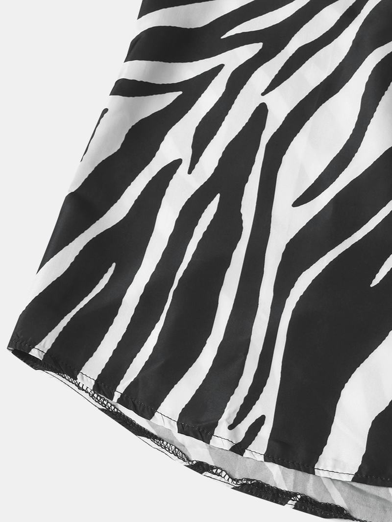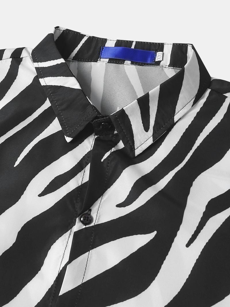 Męskie Zebry Wzór Druku Stylowe Klapy Zrelaksowany Krój Koszule Z Długim Rękawem