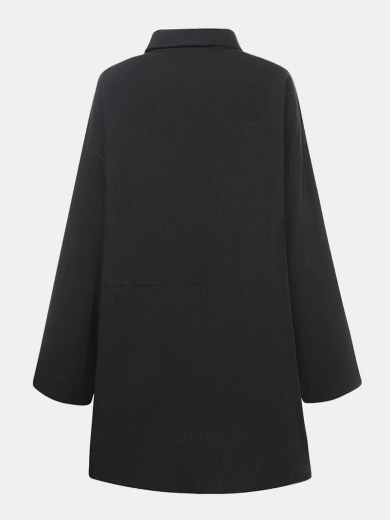 Nieregularne Koszule Damskie Z Długim Rękawem W Jednolitym Kolorze Z Kieszeniami