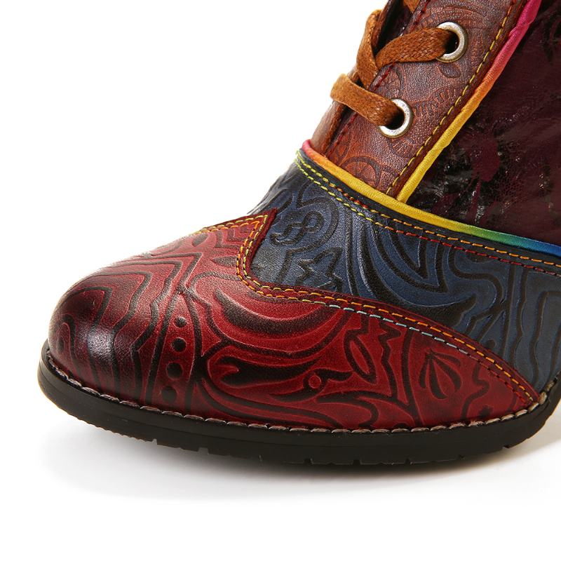 Retro Tłoczone Prawdziwej Skóry Łączenie Różowy Kwiat Szpilki Botki
