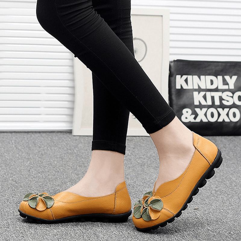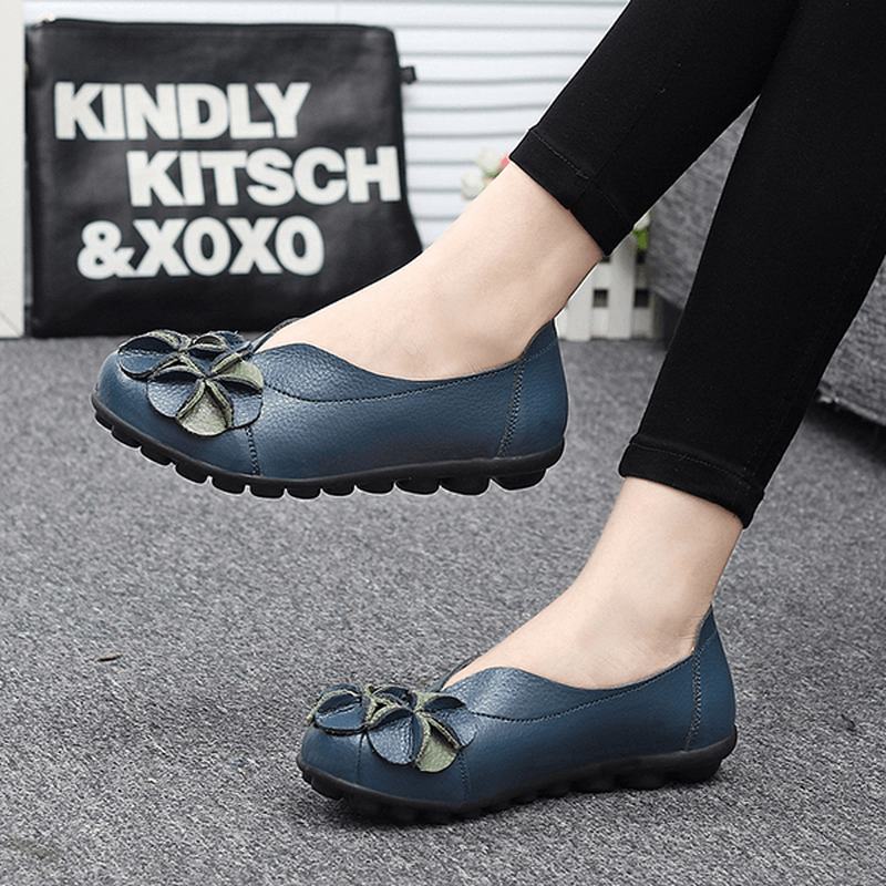 Rozmiar Us 5-13 Kobiety Płaskie Buty W Kwiaty Casual Outdoor Leather Slip On Round Toe Loafers