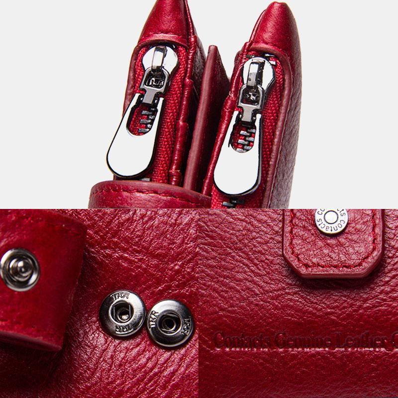 Skórzany podwójny zamek błyskawiczny Casual Fashion Jednokolorowy portfel na karty z wieloma gniazdami