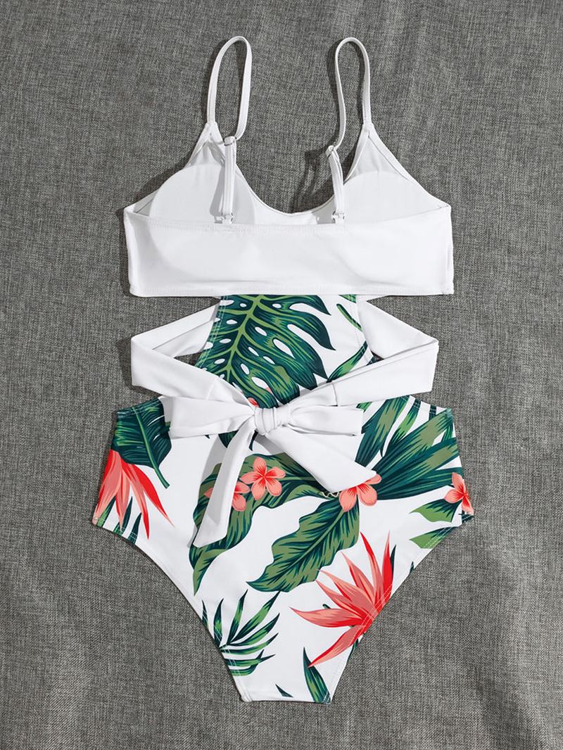 Tropical Plant Drukowanie Crisscross Cut Out Strappy One Piece Hawaii Style Damskie Swimwear