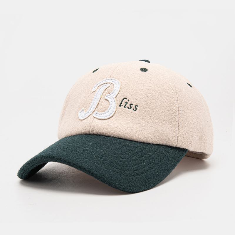 Unisex Wełniana tkanina Kontrastowa patchworkowa Naszywka z literami Haftowana ciepła Czapka bejsbolówka w stylu vintage
