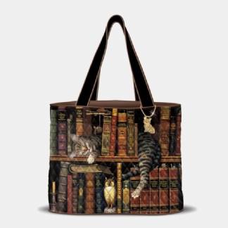 Kobiety Płótno Śliczny CZarny Kot Wzór Torebka Torba Na Ramię Tote